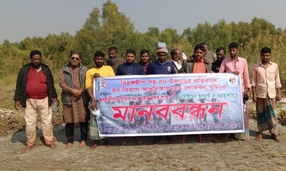 এ সময় বক্তারা বলেন, বিহঙ্গ দ্বীপে ধানসি গাছ সহ বিভিন্ন প্রজাতির গাছ রয়েছে কিছু বনদস্যুরা প্রতিনিয়ত কেটে বন উজাড় করছে, এছাড়াও পাথরঘাটার সবুজ বেষ্টনী ম্যানগোভ বনের গাছ কেটেও উজাড় করছে। বন বিভাগ মামলা দিলেও প্রকৃত অপরাধীরা ঝরা ছোয়ার বাইরে থাকে আর নির্দোষ ব্যক্তিরা হয়রানি হয়।